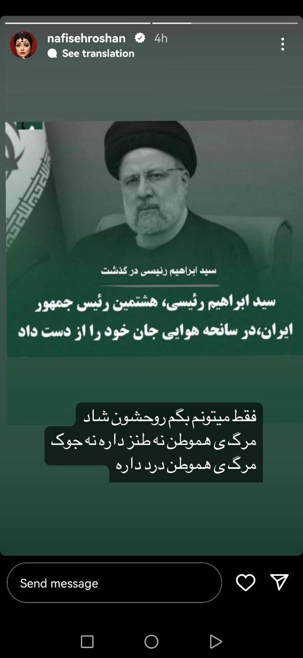 حالم بسیار خراب شد وقتی این خبر تلخ را شنیدم. چون در دولت آقای رئیسی بسیار تلاش دیدم. حتی وزیر ارشاد ایشان به منزلم آمدند و دیدار کردیم. این اتفاقات در گذشته نمیافتاد.